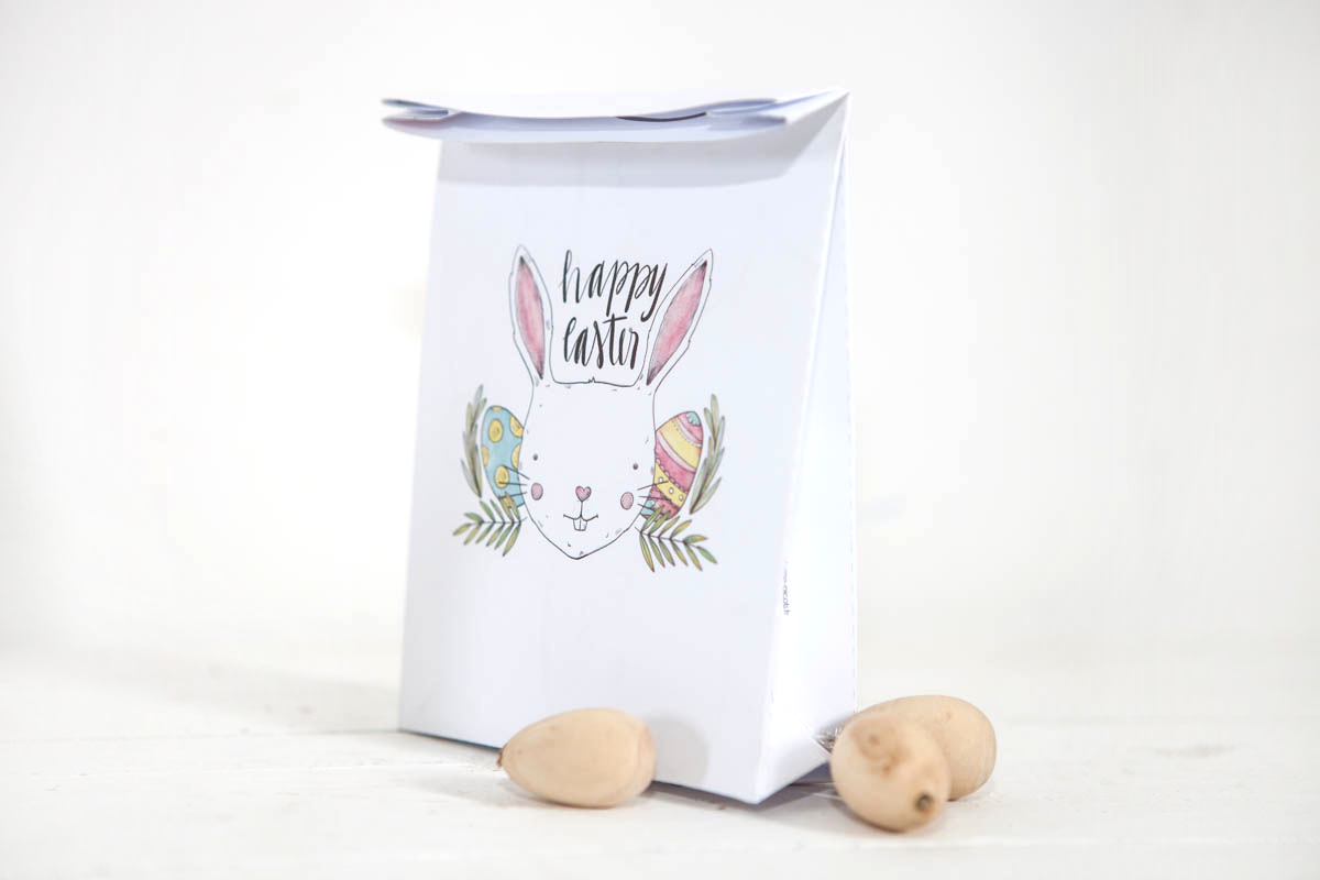 Il y a deux dessins de lapins, que j’aime tout particulièrement, les boites sont softs, douces et toute poétiques. Les textes sont en anglais parce que les mots sont plus courts forcément. Il n’y a pas besoin de découpage, que du pliage et un peu de collage. Et voilà des boites prêtes à être garnies de cadeaux et chocolats en tout genre ! Vous pouvez même les agrémenter au dessus d’un petit noeud qu’il vous suffira de glisser dans des trous percés avant.