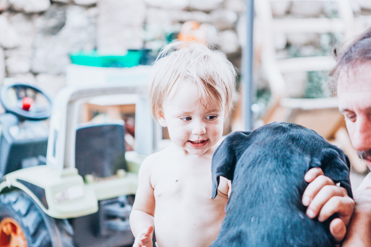 Je crois même que le premier mot de Charlie, fut le nom d’un de nos chats : Wicket ! Ce chat n’aime normalement personne, mais un lien unique s’est créé avec Charlie à sa naissance, nous ne saurons l’expliquer mais elles s’adorent et Charlie est la seule qu’elle ne tape pas. Nos animaux vivent dans notre foyer à part entière et ont tous leur place. Mais campagne, animaux, enfants, cela donne un fabuleux cocktail pour l’apparition d’indésirables : puces, tiques et vers sont à la maison chaque saison si nous ne traitons pas nos animaux très régulièrement.