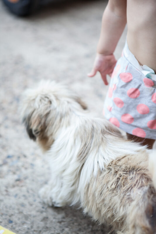 Des animaux, nous en avons toujours eu à la maison enfants. Lorsque nous nous sommes mis ensemble, Pierre et moi, ça a été le cas également puisque mon chat, Olympe, nous a suivi. L’année suivant notre emménagement, nous avons adopté notre deuxième chat : Wicket. A la naissance des enfants et avec une maison avec jardin, ce sont les chiens que nous avons finalement adoptés à la SPA pour Hindi, alors âgée de 6 mois et en famille en Décembre 2014 pour Ginny. Les enfants grandissent avec eux depuis qu’ils sont nés et c’est un lien particulier qui se créé entre eux. Les chats, d’abord craintifs, ont appris à vivre avec des enfants en bas âge, les chiens, ça a toujours été le cas et font très attention aux enfants.