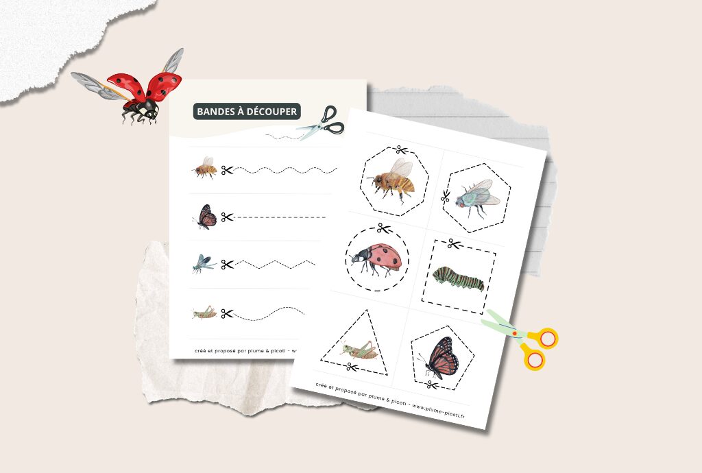 Aujourd’hui, je vous retrouve pour des printables totalement gratuits ! Il avait longtemps que je n’en avais pas partagé d’autres que des coloriages alors, je vous laisse découvrir ces quatre fichiers autour du découpage : lignes ou formes, il y en a pour tous les niveaux. Cette activité complète parfairement celles que je propose dans l’espace abonnés sur le thème des insectes.
