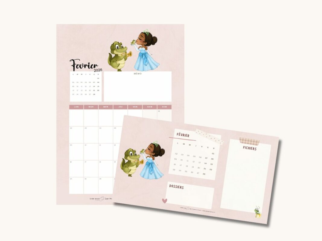 Le calendrier de février 2026 a été conçu pour rester lisible, pratique et agréable à utiliser. Chaque journée dispose de suffisamment d’espace pour noter vos rendez-vous, activités familiales, tâches importantes ou petits rappels du quotidien. Le design de cette année représente des personnages Disney pour une ambiance féérique tout au long de l’année.