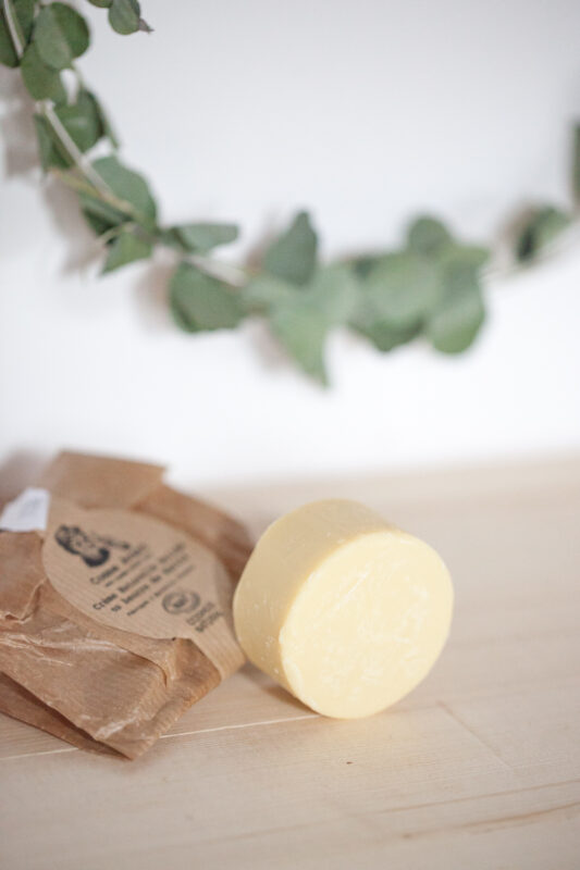 Pour commencer notre découverte des produits, nous commençons avec le basique de la salle de bain : le savon. Ce savon saponifié à froid et composé de 100% d’huile d’olive bio convient pour toute la famille mais pas que, il est aussi différent du savon de Marseille et moins agressif ! L’avantage d’un tel produit est qu’il est utilisable absolument sur tout le corps, visage et cheveux. Il convient également à tous les types de peaux.