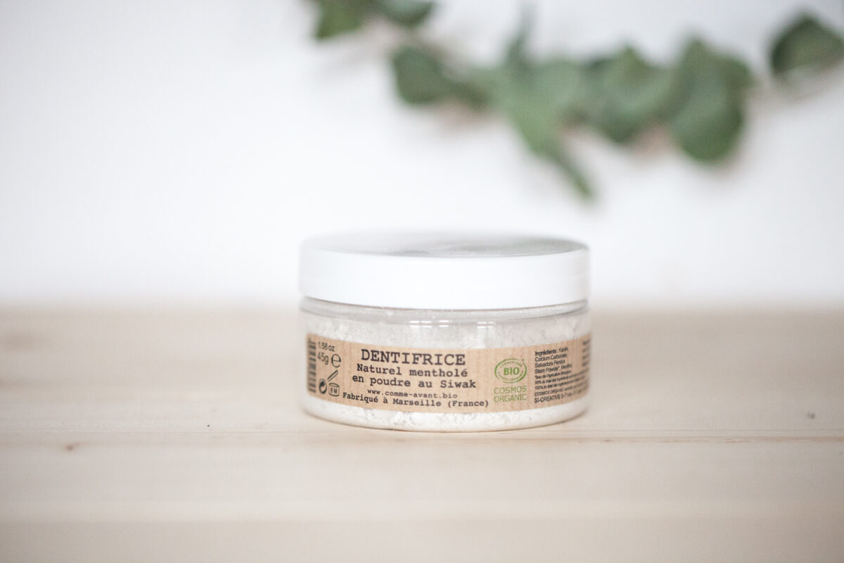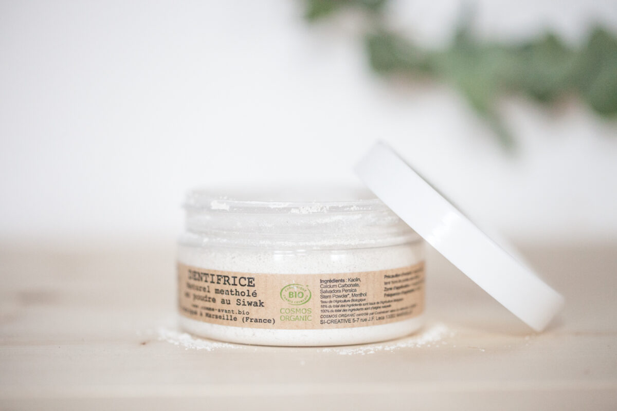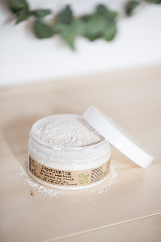 On fini les présentations avec les deux produits qui m’ont le plus surprise lors de la réception parce qu’ils ne sont pas banals. Pour commencer, nous avons reçu ce pot de dentifrice … En poudre ! J’ai été très surprise du contenu mais été impatiente de l’utiliser. Il s’agit là d’un dentifrice sans fluor, sans produits de synthèse et entièrement naturel. Il est composé de Siwak qui nettoie les dents en douceur et laisse une haleine fraiche.