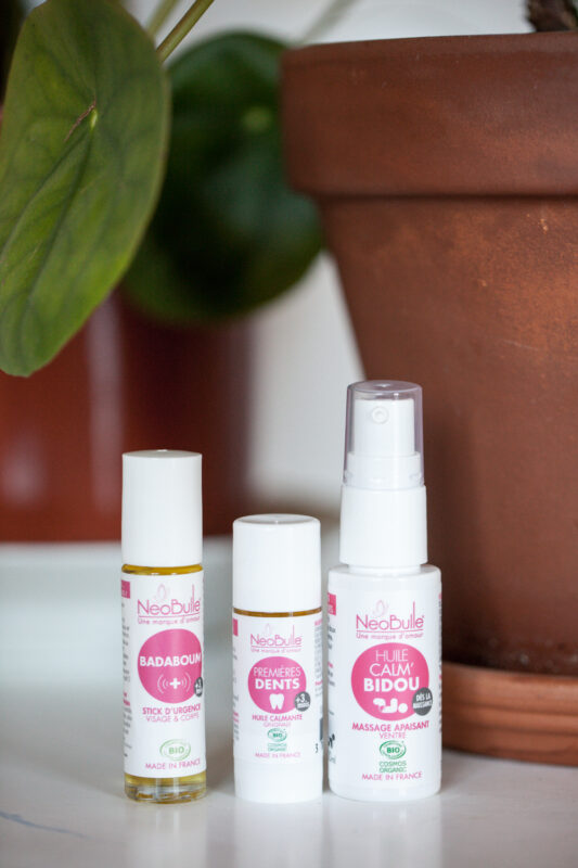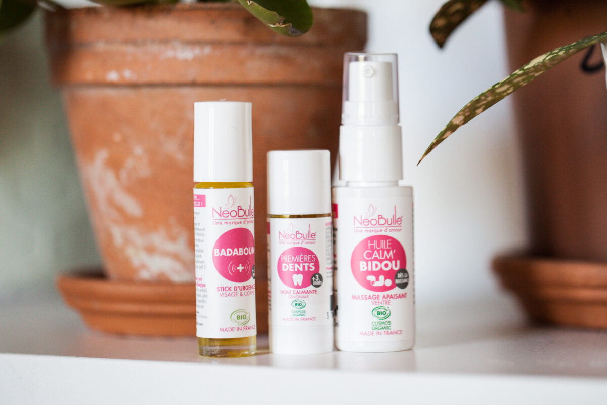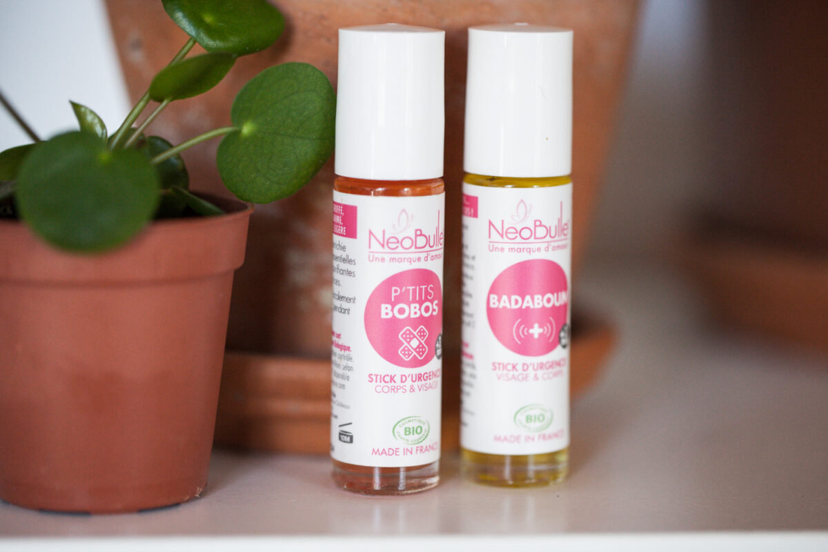 Néobulle, ce sont des produits de soins pour bébé dès 3 mois le plus souvent, composés de certaines huiles essentielles, il permet de soulager bébés et enfants des maux du quotidien : rhume, dents, petits bobo, bleus, coups, ou encore piqûres. Grâce à des mélanges d’huiles, nous avons des petits concentré de sauvetage d’urgence, à emporter partout grâce à leur packaging tout riquiqui.
