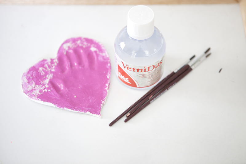 Il faut attendre au moins 24H pour que le plastiroc sèche. Une fois bien sec et bien dur, vous pouvez passer à la phase peinture. J’aurais aimé qu’Alice le fasse consciencieusement mais ce ne fut pas le cas, elle a bien commencé en mettant en peinture juste la main mais pour le reste … Elle s’est contenté de le faire tout rose du coup 🙂 Mais comme c’est un cadeau d’enfant à maman, je l’ai laissé faire !