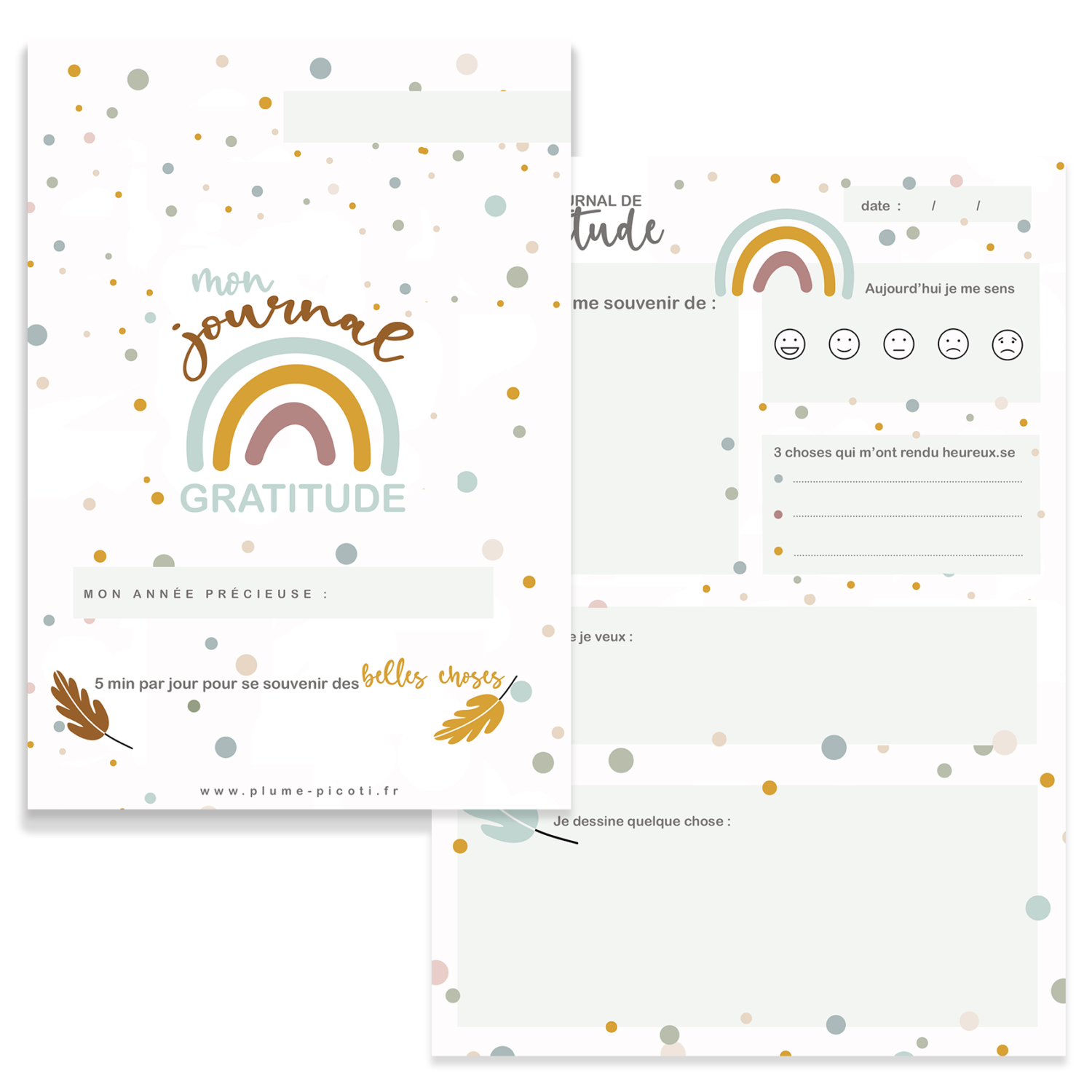 Le printable est composé d’une page de couverture et d’une autre page (au format A5), contenant une série de questions pour permettre à l’enfant de poser sur papier sa journée. Il lui est proposé de noter son émotion du jour, cinq différentes étapes sont notées, leur permettant de se rendre compte qu’ils peuvent, eux aussi, subir des journées plus difficiles que d’autres. On les invitera à poser leur souvenir du jour, cela peut vous sembler insignifiant, plutôt triste ou mêlé de colère, mais laissez-les le noter.