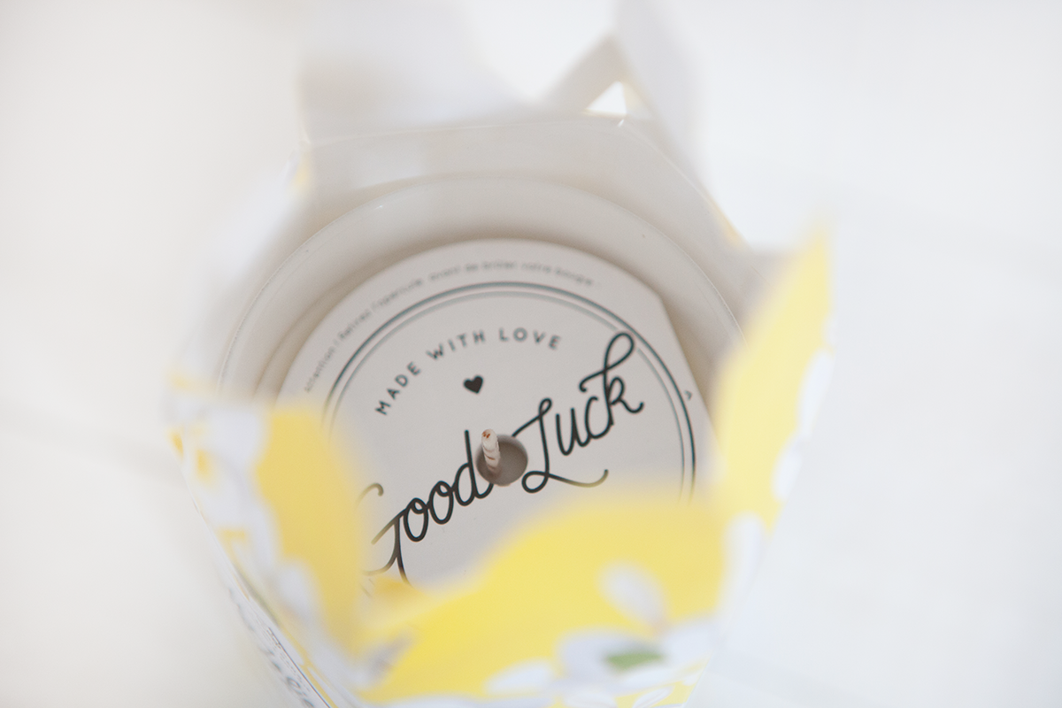 En ouvrant le petit accordéon de la boite, on découvre la bougie, un petit dépliant « Good Luck » vous expliquant comme marche la bougie : les recommandations de sécurité, l’allumage et surtout : comment récupérer le petit bijou à l’intérieur de la bougie. Il existe un petit point sur l’entretien des bijoux ainsi qu’une note sur les bougies et la qualité de celles ci. Le tout, en Français et en Espagnol.