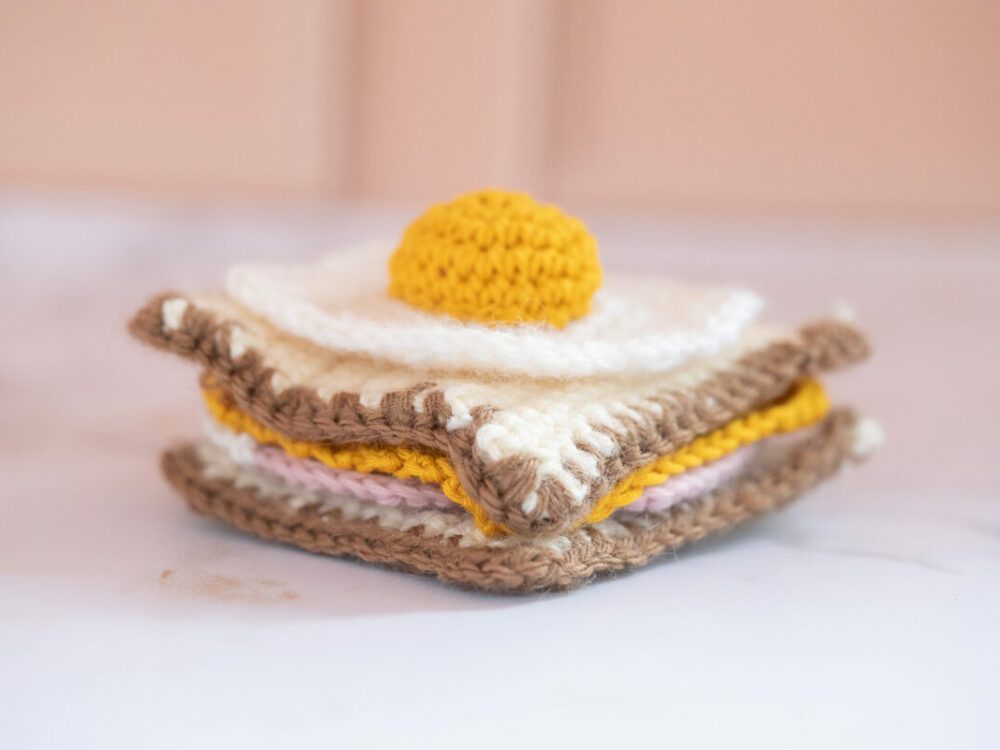 Tutoriel pour crocheter votre propre Croque Monsieur au crochet : tartines, jambon, fromage