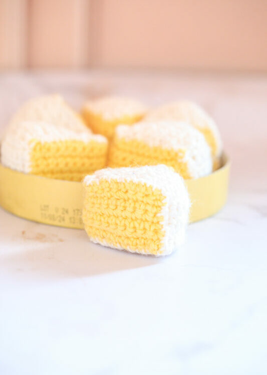 Tutoriel pour crocheter votre propre camembert au crochet : 6 petites parts pour plus de réalisme
