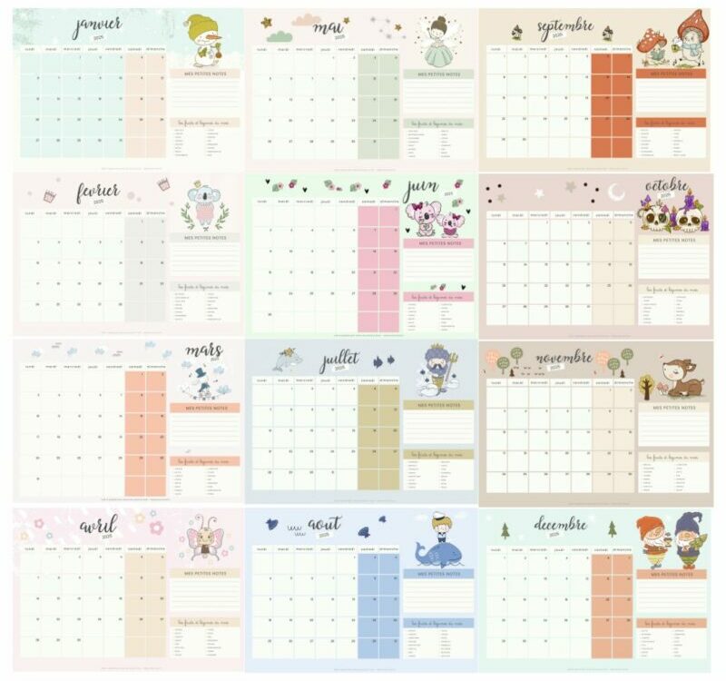 Ils sont de retour ! Les calendriers 2025 sont tous disponibles du mois de janvier au mois de décembre 2025, au format PDF et en version horizontale
