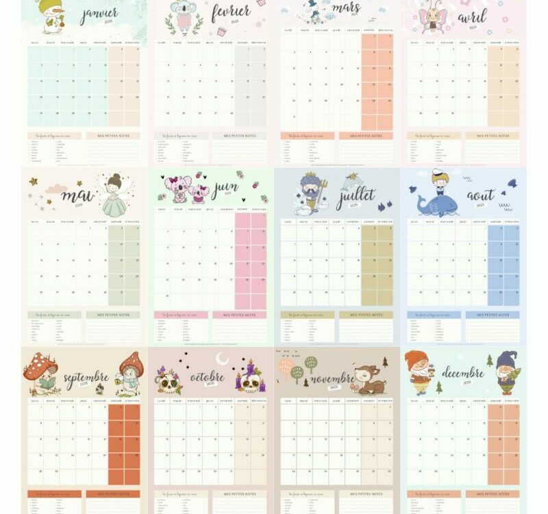 Ils sont de retour ! Les calendriers 2025 sont tous disponibles du mois de janvier au mois de décembre 2025, au format PDF et en version classique « verticale »