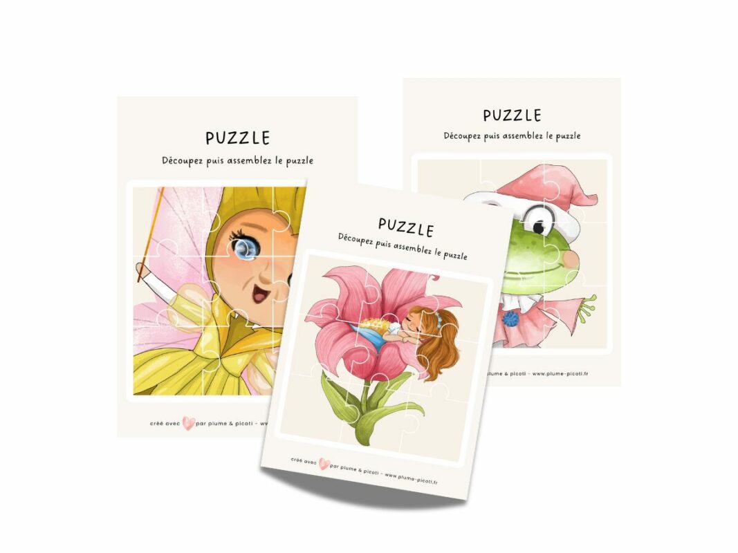 Pour cette dixième surprise du Calendrier de l’Avent, j’avais envie de proposer un moment doux et ludique, une activité qui combine imagination et concentration : trois puzzles à imprimer sur le thème de Poucelina, chacun composé de neuf pièces. Ces petits puzzles sont parfaits pour occuper un après-midi au chaud, partager un moment avec les enfants, ou tout simplement profiter d’une parenthèse créative au cœur de décembre.